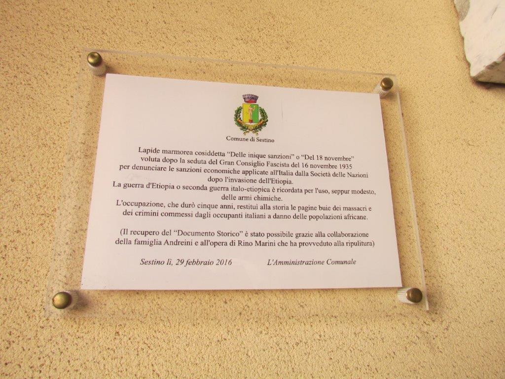 La lapide è proprio quella delle “inique sanzioni” e si trova sul muro di una vecchia casa in un vicoletto.
