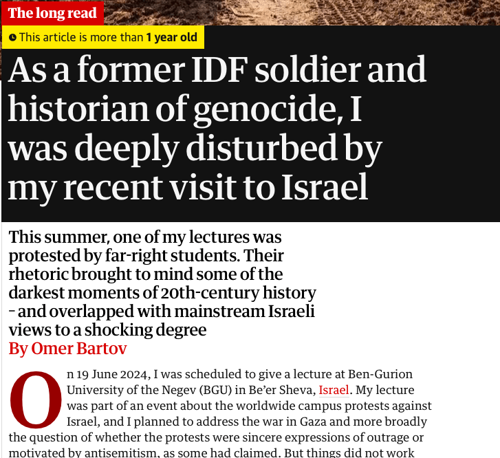 Queste note erano necessarie per inquadrare nella giusta prospettiva ciò che Bartov ha scritto e fatto fra l’ottobre 2023 e l’intervento sul New York Times del luglio 2025; cioè prima del suo franco riconoscimento che quello in atto a Gaza è, per uno storico quale lui è, un innegabile genocidio.