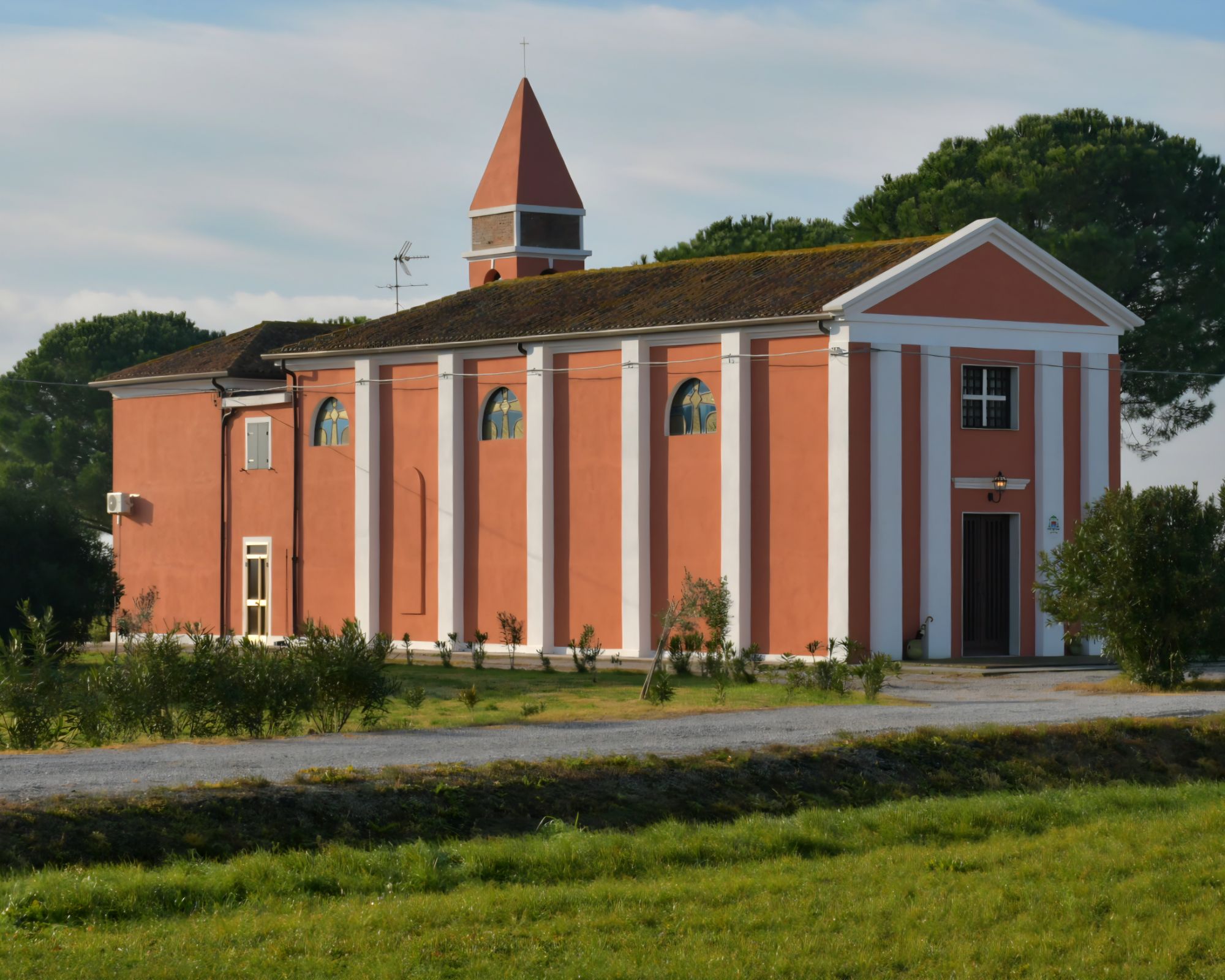 La chiesa del borgo agricolo di Bonelli (RO), costruito per i braccianti delle risaie. Foto di M. Meacci