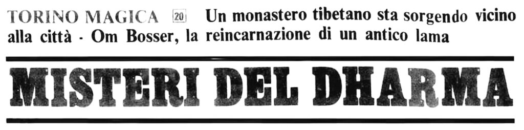Il ventesimo articolo è dedicato a un monastero tibetano che sorge a Forno di Coazze, in provincia di Torino. Per inserirsi nel filone magico, la narrazione ricorre a un repertorio di pratiche eccezionali come la levitazione, la telepatia, la chiaroveggenza e le proiezioni astrali. Su questo sfondo, la storia del Tibet viene riletta in chiave anticomunista: i monaci, spiega Giuditta Dembech, avrebbero “previsto” l’invasione cinese e predisposto in anticipo la fuga dei loro insegnamenti all’estero. La cronista identifica gli invasori con i “comunisti” per creare una contrapposizione netta: da una parte un’orda materialista e distruttiva, dall’altra una tradizione spirituale nobile ed elevata, che troverebbe nella provincia torinese un rifugio al riparo dalla “furia rossa”.