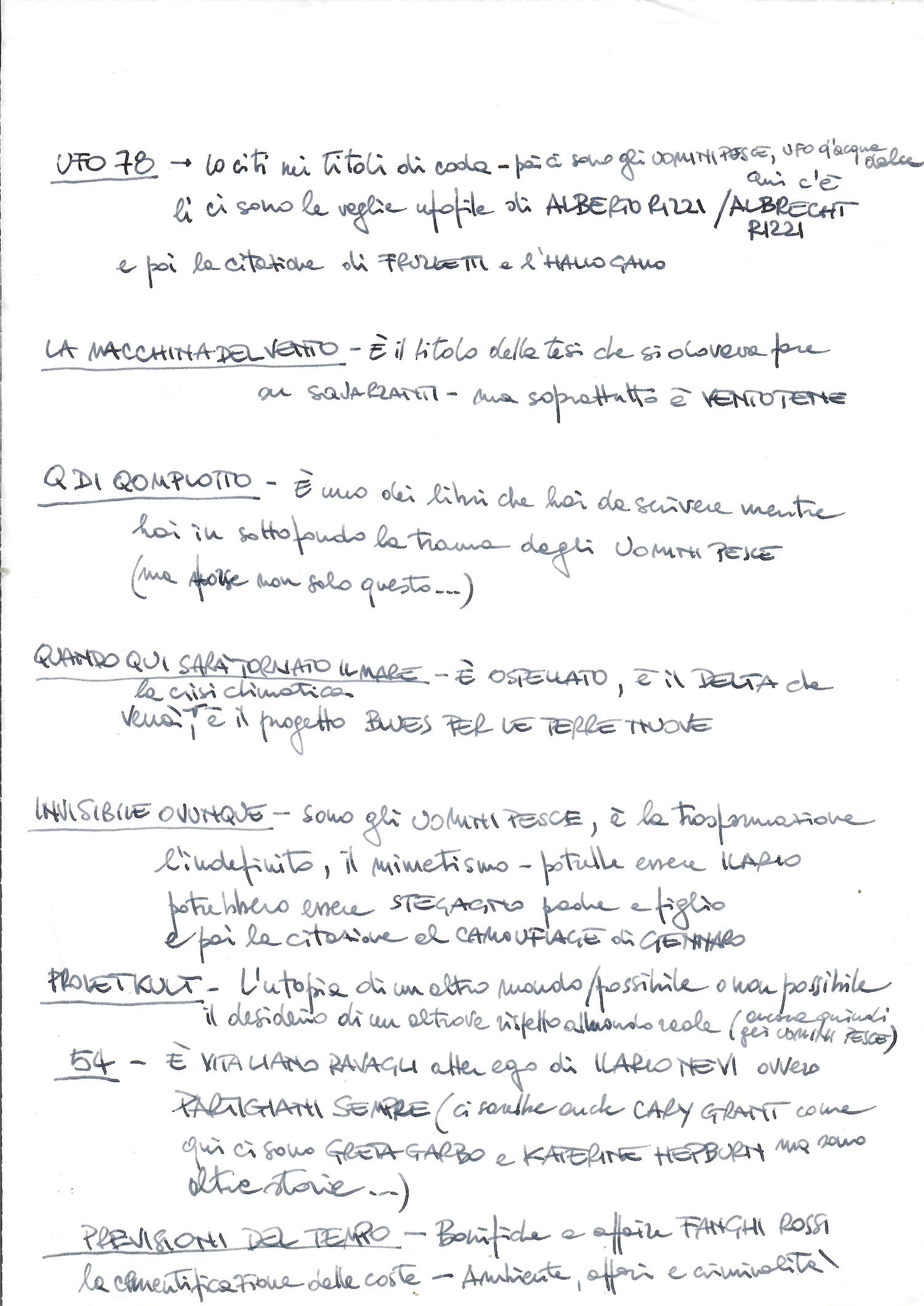 Appunti di Beppe Muraro per la presentazione veronese de Gli uomini pesce, pigia sull’immagine per ingrandirla.
